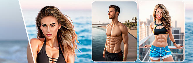 The AI within the Hot Body feature spices up photos by adding six-pack abs and athletic builds, giving the user's body a more sculpted look.